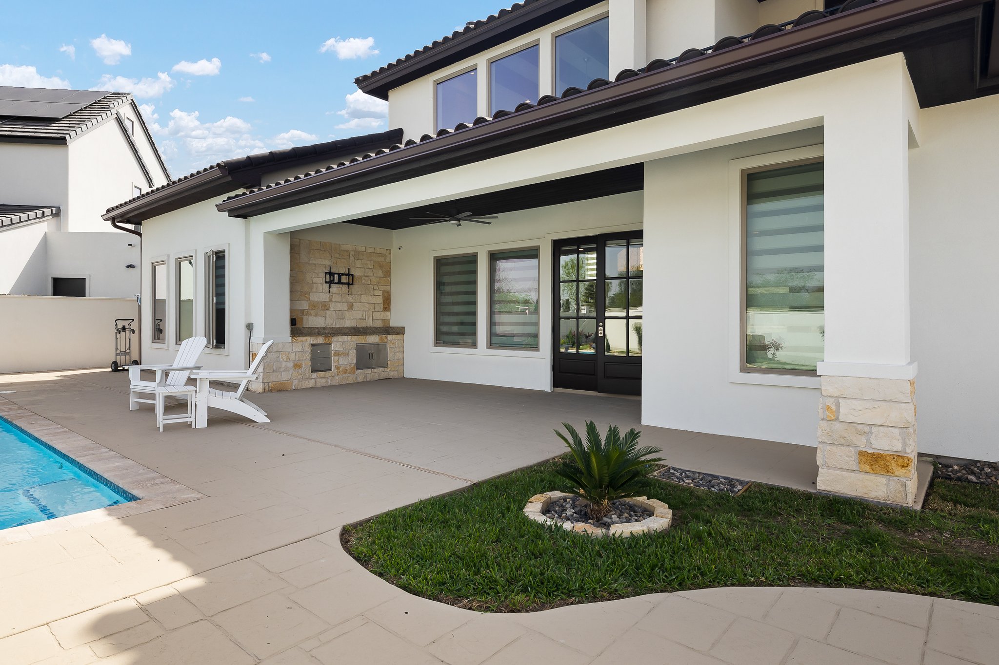 This striking two-story residence in The Embers, a premier luxury subdivision in McAllen, Texas, defines upscale living. Positioned near shopping, dining, schools, and hospitals, it features a gourmet kitchen with custom cabinets, a gas cooktop, expansive counters, and a bold island, opening to a soaring living area with a dramatic two-story fireplace. The primary suite offers a tranquil escape, complete with a spa-like bath, large shower, soaking tub, and spacious walk-in closet. Outside, a shimmering pool, dual outdoor kitchens, and a fireplace create an entertainer’s haven accented by pristine landscaping. A bonus game room and chic catwalk add distinction, paired with a sleek side-entry garage. Set within The Embers’ gated community of impressive homes, this property exemplifies luxury—experience it firsthand with a private tour today!